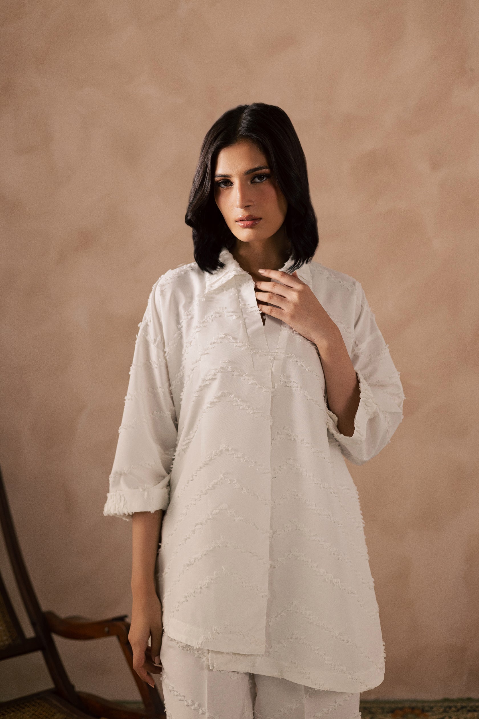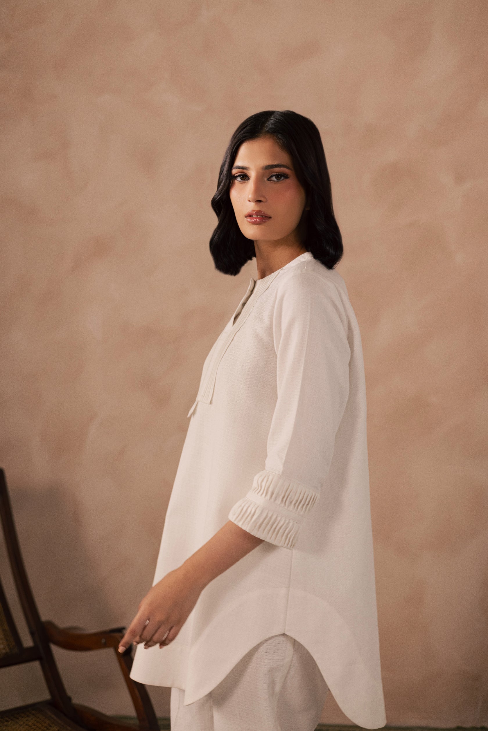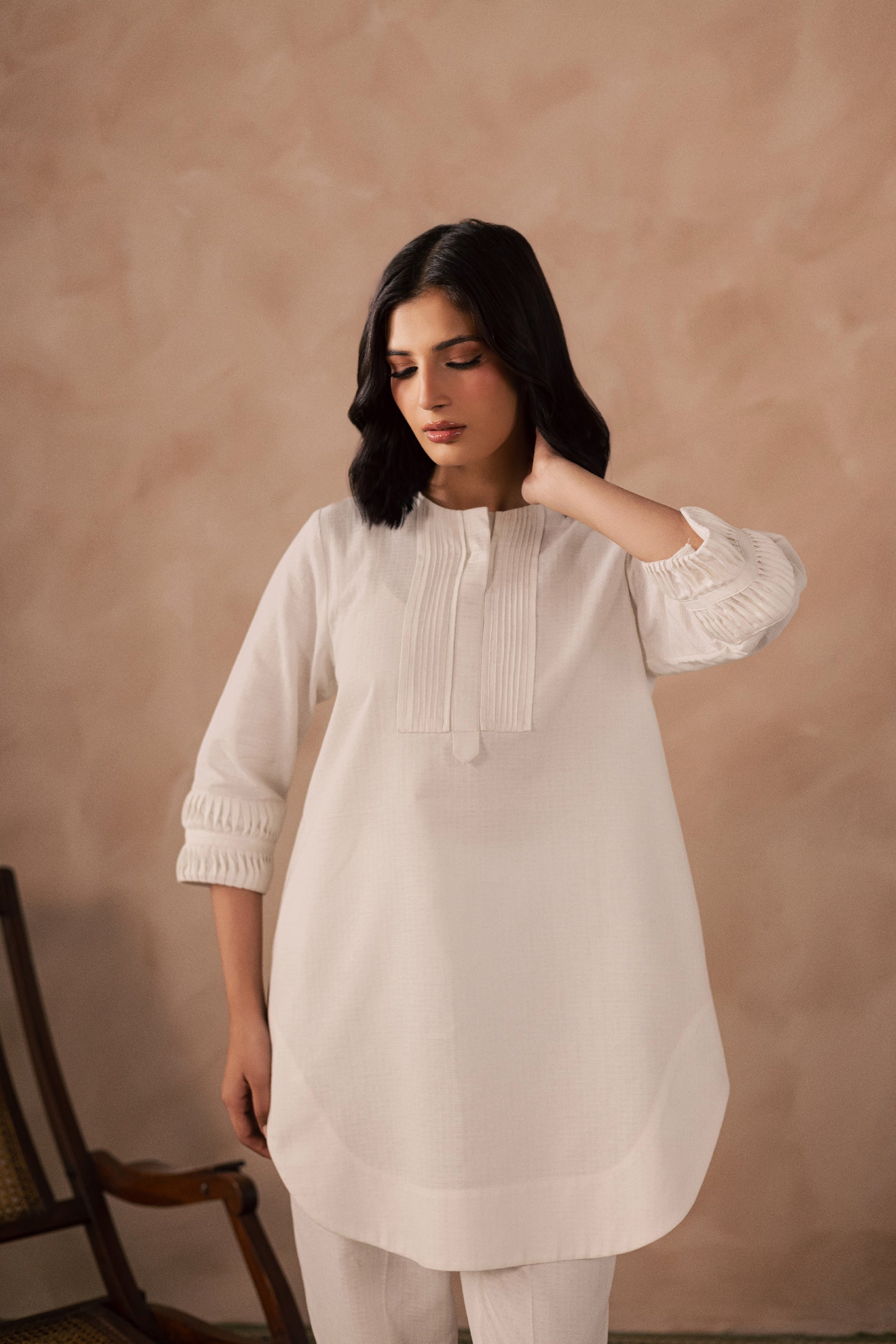 White Crinkle Tunic Top