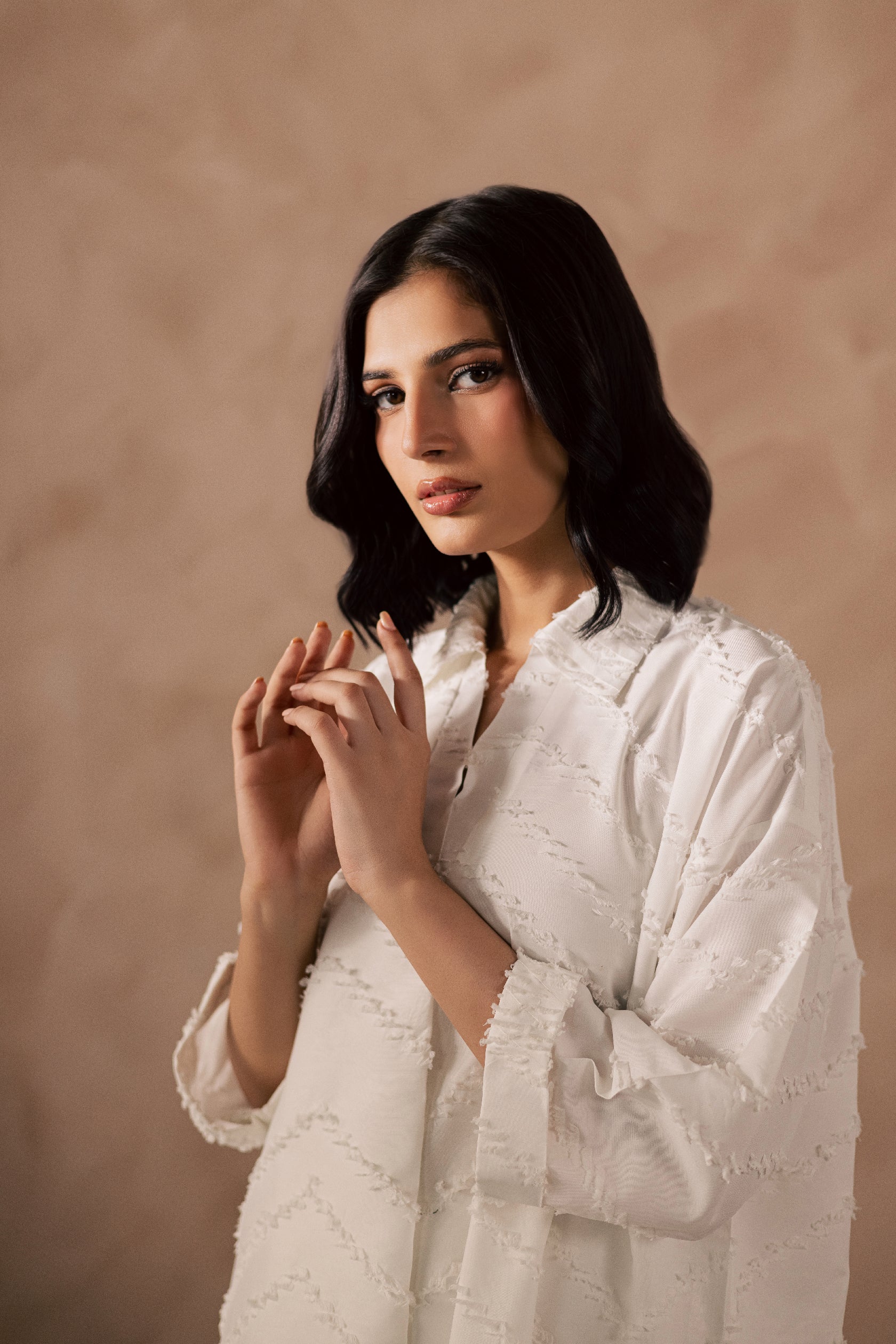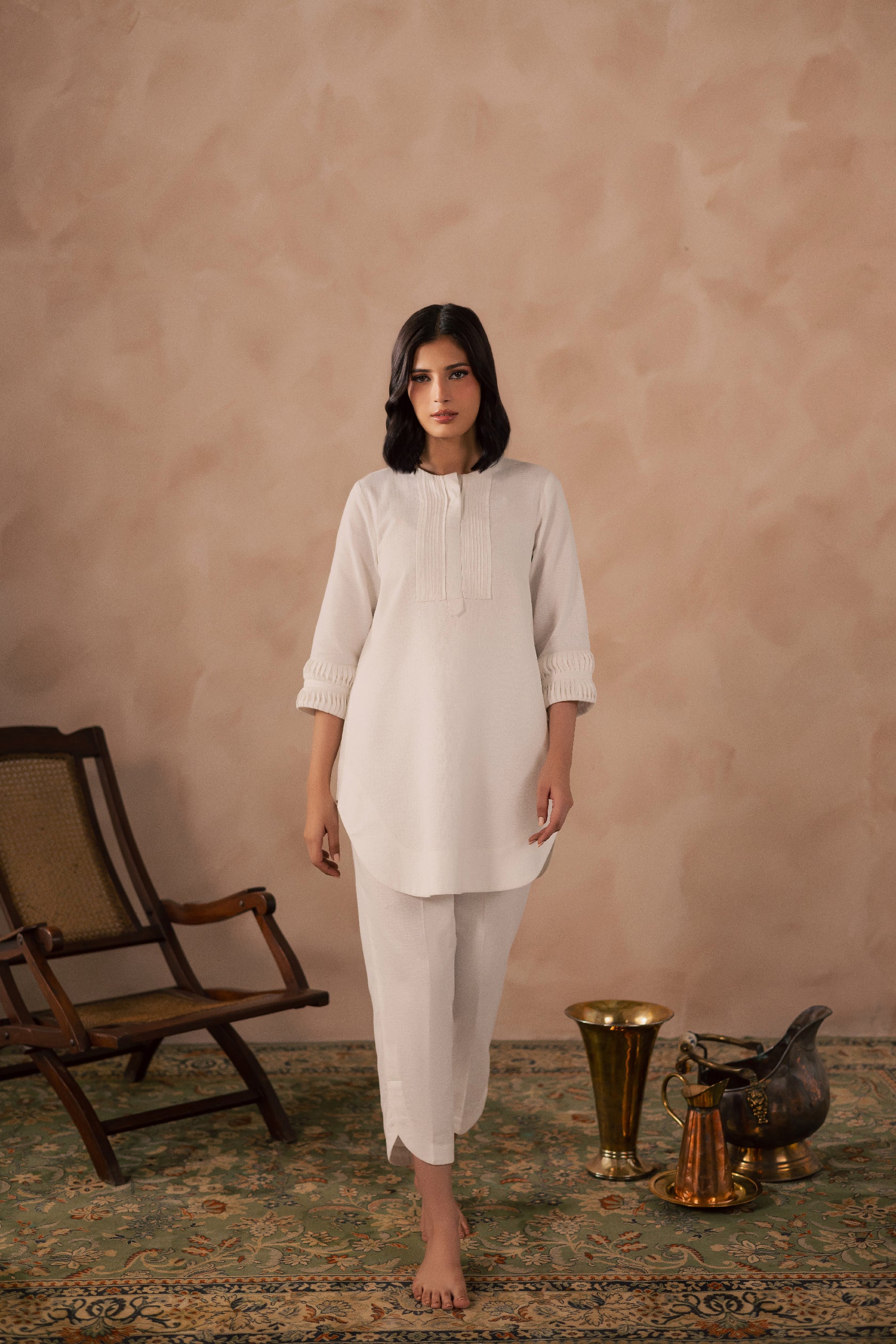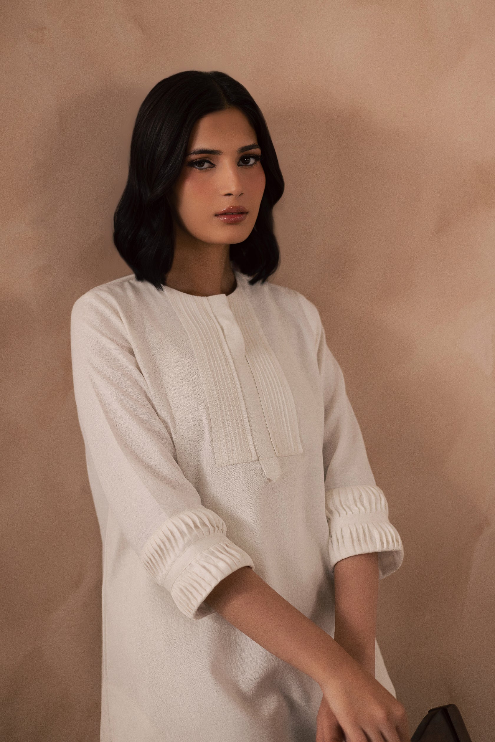 White Crinkle Tunic Top